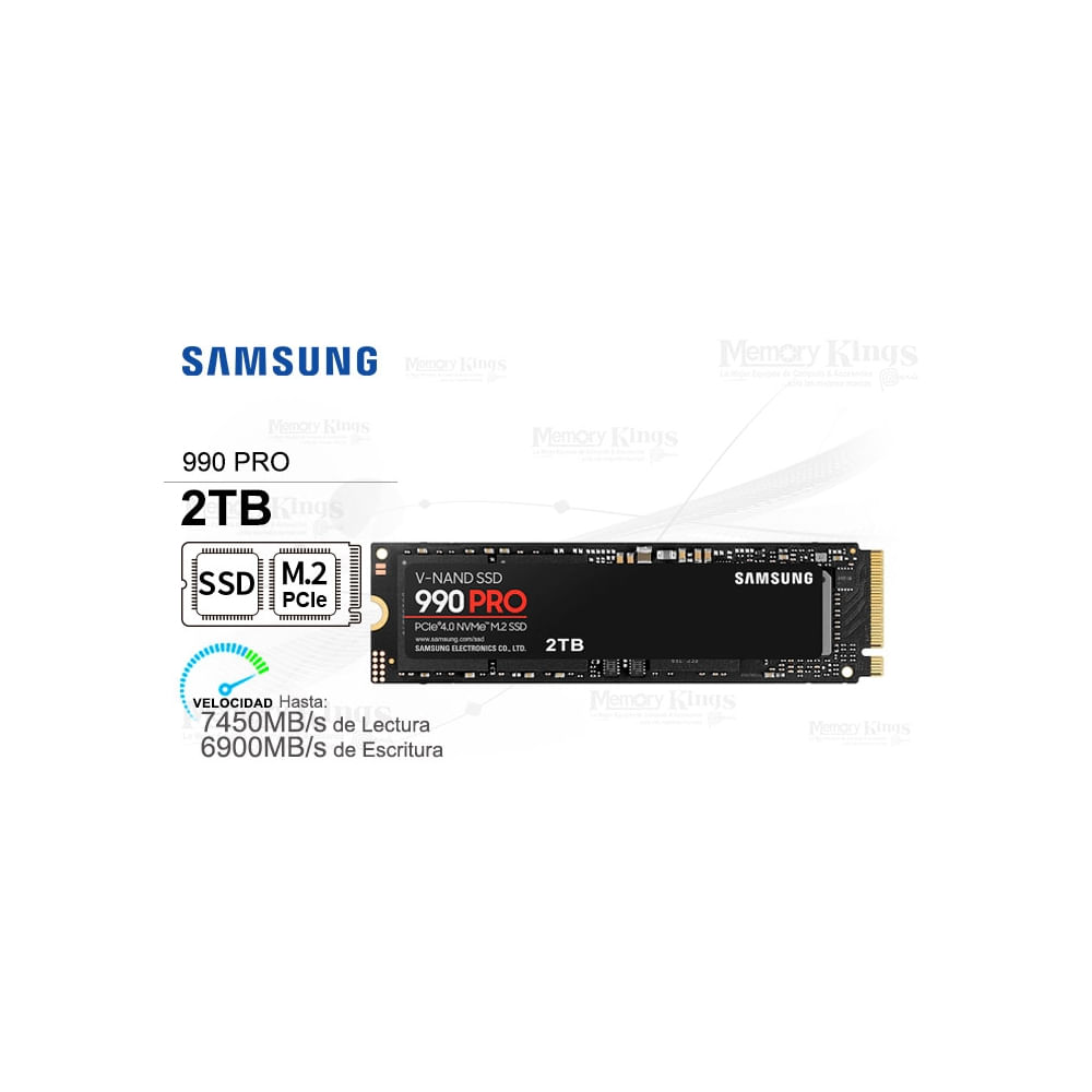 Samsung 990 Pro 2TB SSD M.2 2280 - Alta velocidad PCIe Gen 4.0 NVMe para máximo rendimiento - SKU_MZ-V9P2T0B/AM