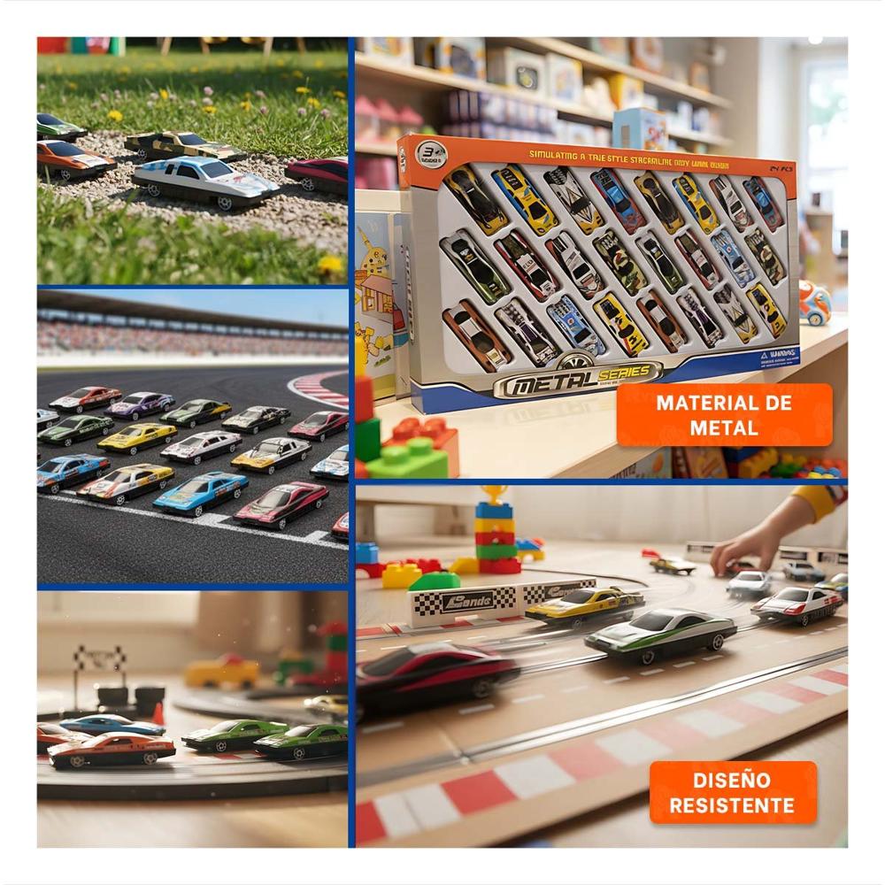 Serie 24 Carritos de Metal para Simular Carreras y Escenas Cotidianas Y+Post It