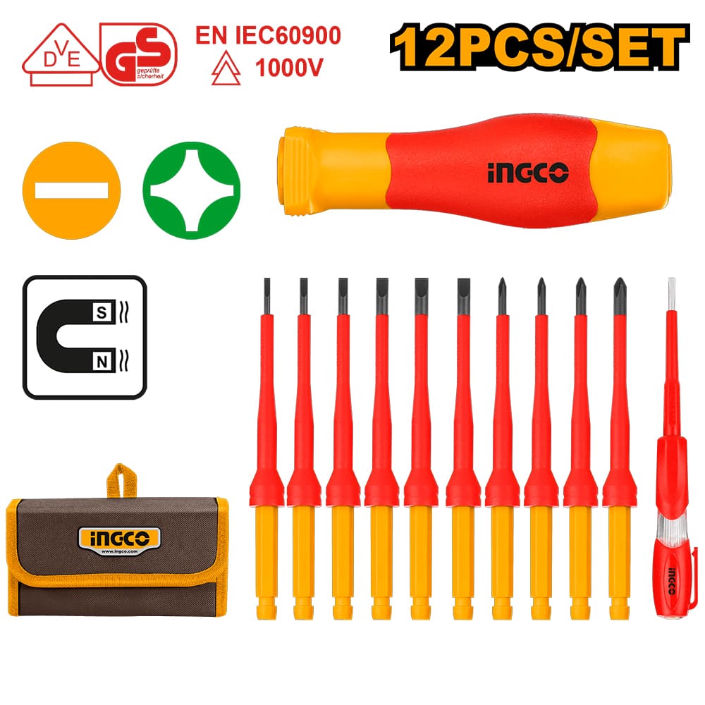 SET 12 Destornilladores Intercambiables Aislados Ingco 1000V HKISD1201