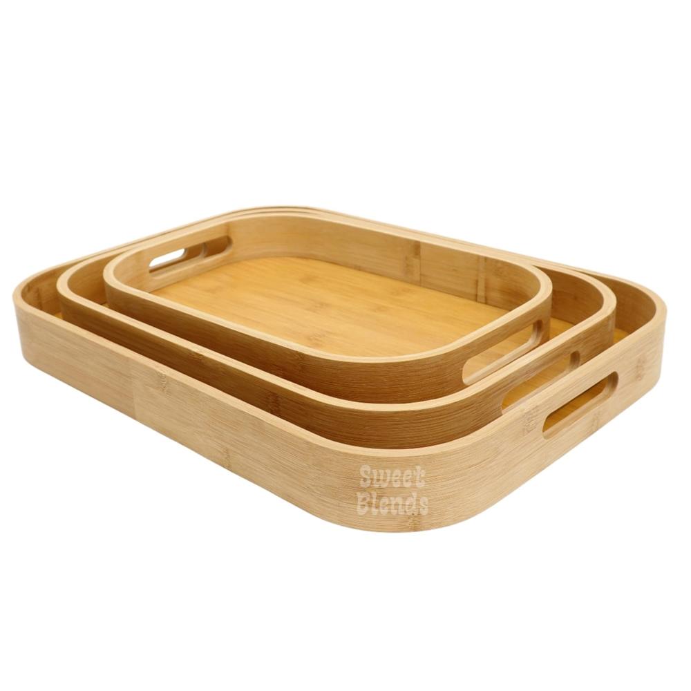 Set 3 Bandejas Bambú Prácticas Resistentes Multiuso
