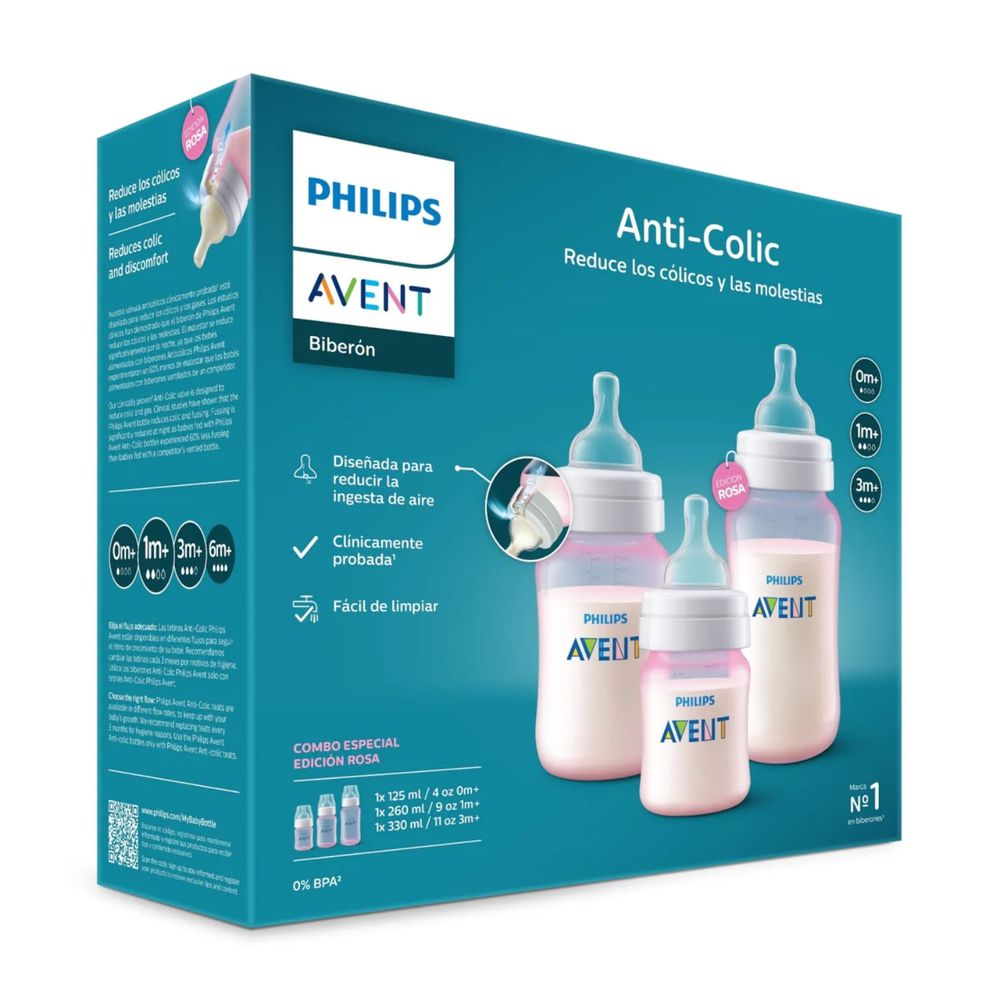 Set Biberones Philips Avent Anticolic Triple Pack Avent Rosado