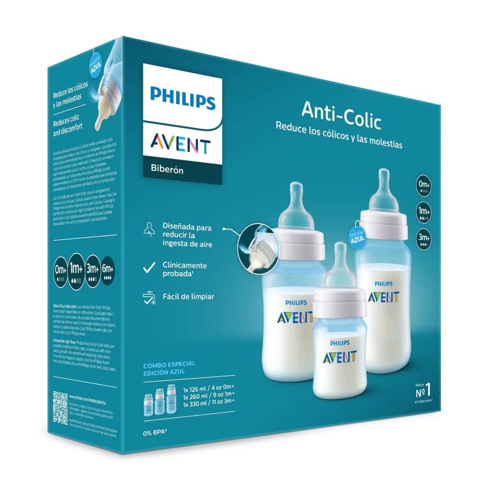 Set Biberones Philips Avent Anticolic Triple Pack Azul
