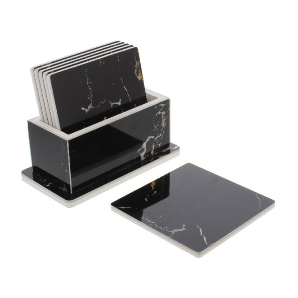 Set de 6 Posavasos Cuadrado Negro 10x10cm Cerámica Rainbows