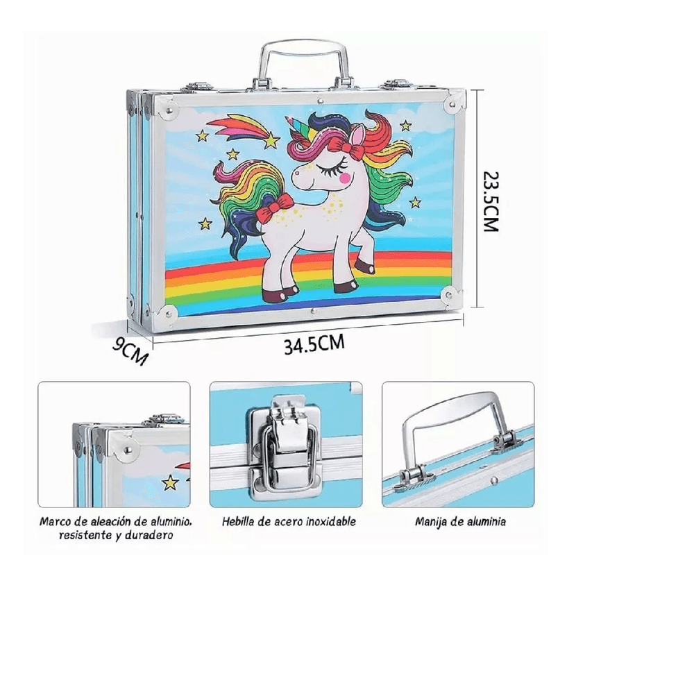 Set de Arte y Pintura Unicornio Celeste- Estuche Compacto 2 Niveles 145 PZS