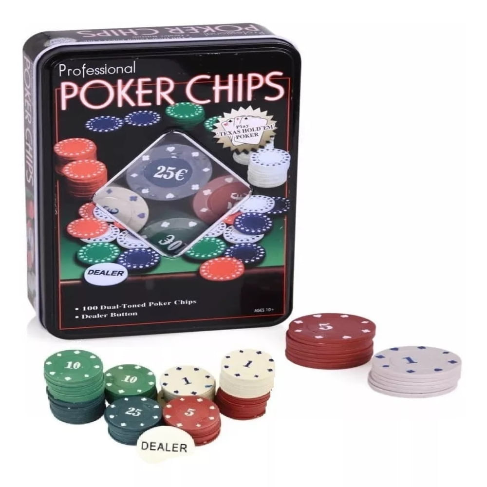 Set Poker 100 Fichas Caja Metal Poker Chips Juegos
