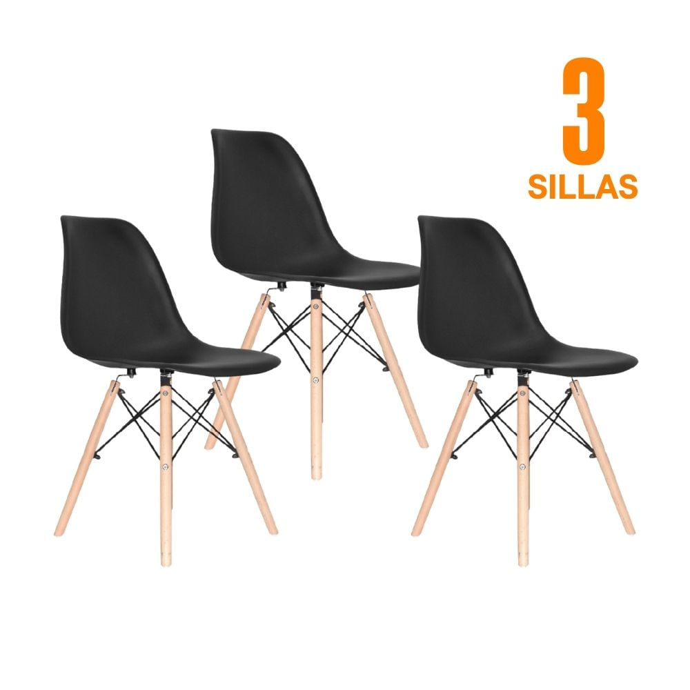 Set x 3 Sillas de Diseño Fija Eames Negro Bonno