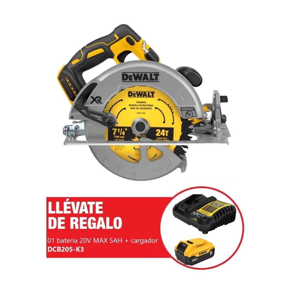 Sierra Circular 7 1/4 20v + Batería 5ah + Cargador Dcs570b-k4 Dewalt