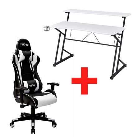 Silla Gamer CLASICA SGBL y Escritorio Fibra de carbono Blanco Technisport