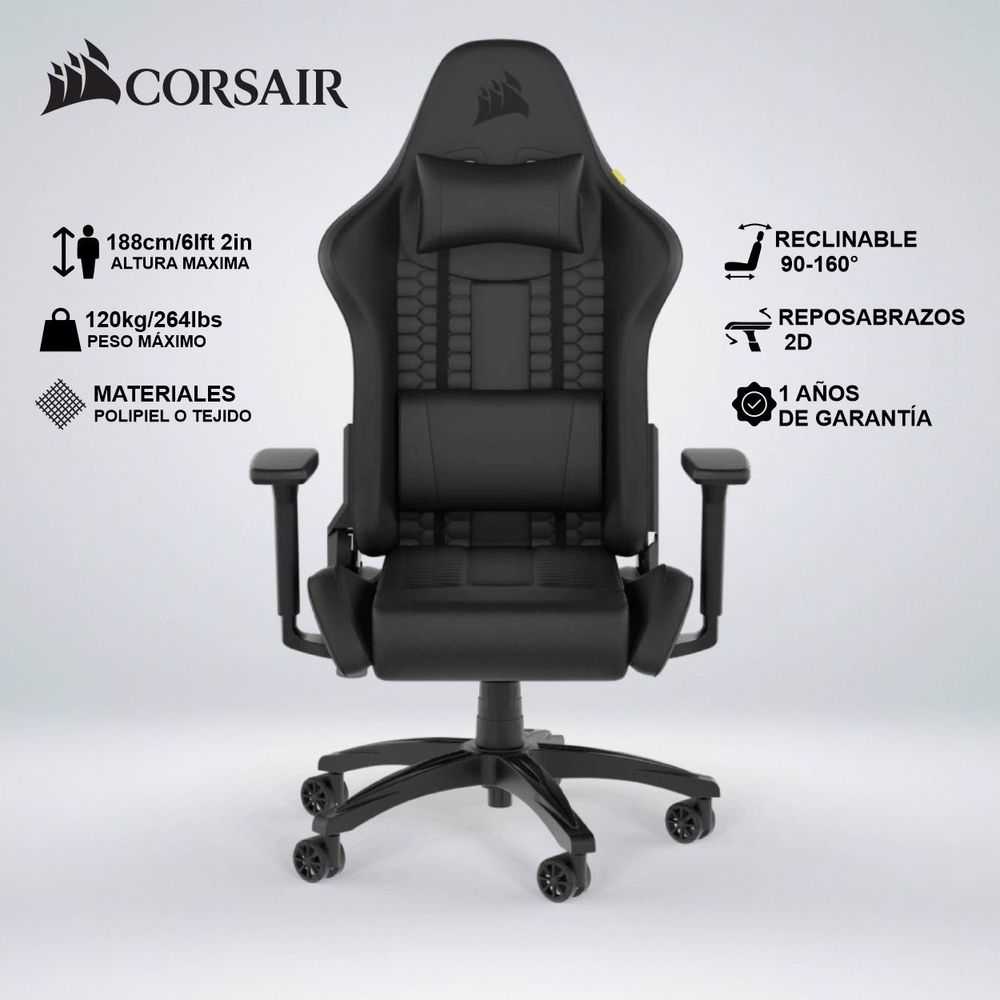 SILLA GAMER CORSAIR TC100 RELAXED LEATHERETTE 2 COJINES RECLINA 160 GRADOS
