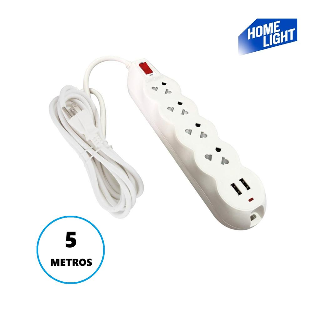 Supresor de pico 5 metros 4Tomas con 2 Entrada USB Deluxe Home Light 200965