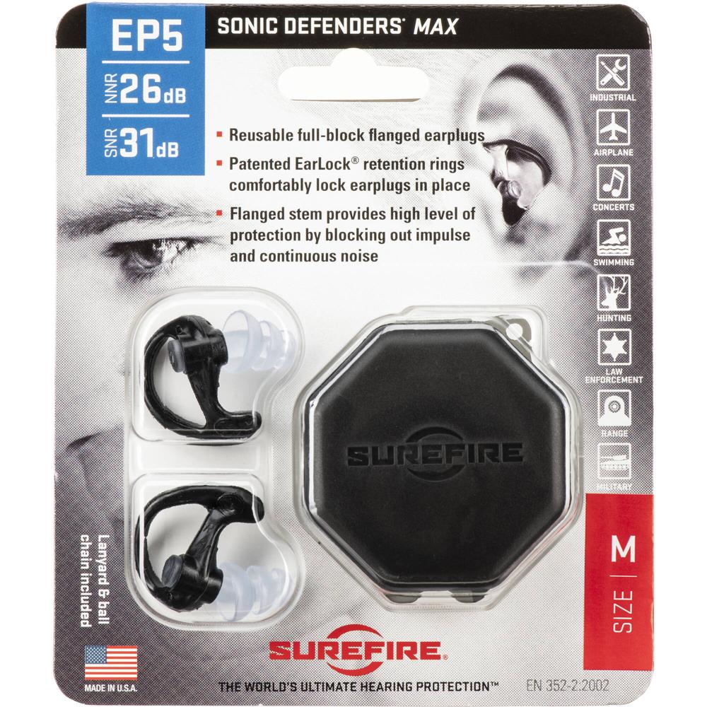 SureFire EP5 Sonic Defenders Max Tapones para los Oídos (Medianos, Negros, 1 Par) - Reducción de Rui
