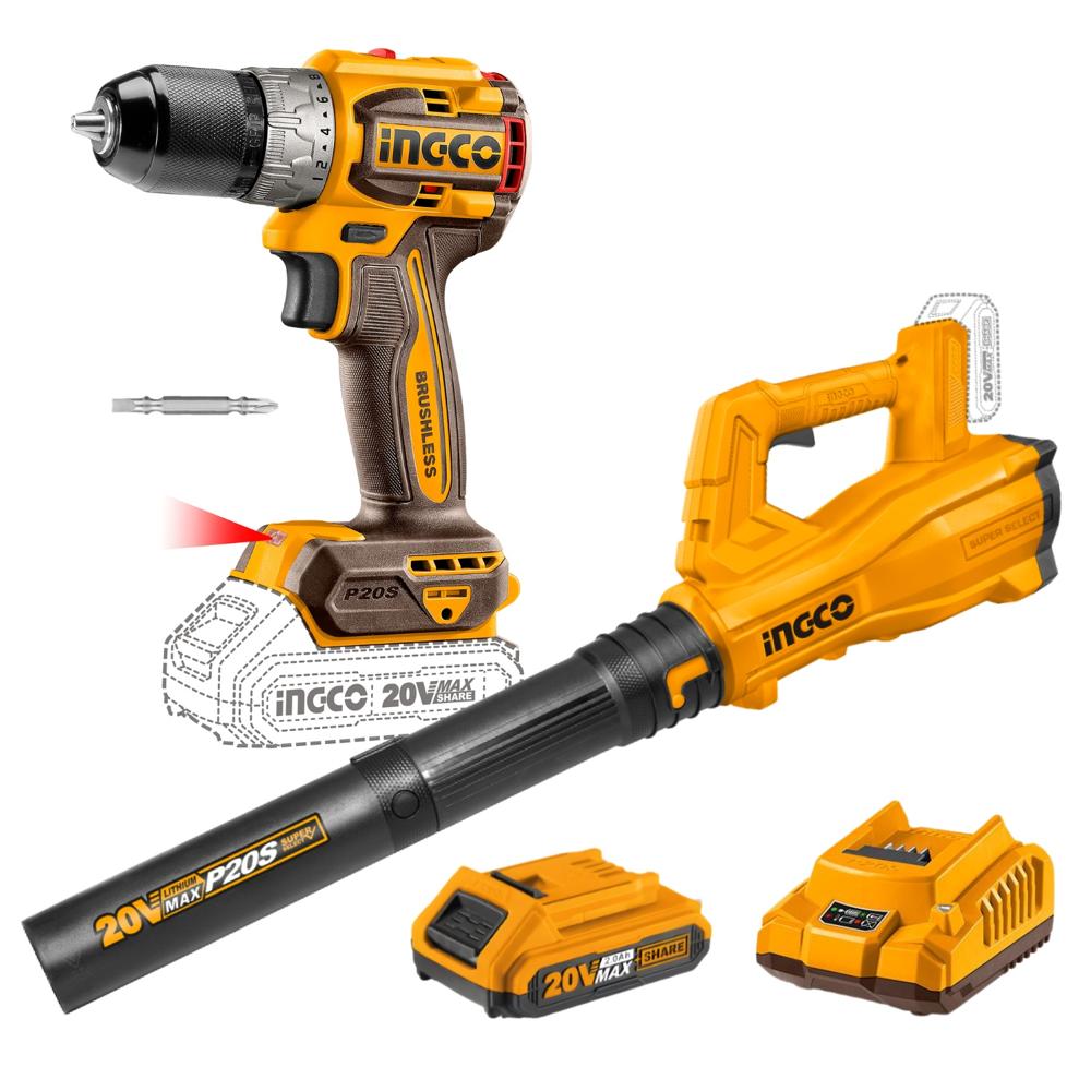 Taladro Atornillador 60Nm + Sopladora 20v Ingco CDLI206021-CABLI203235