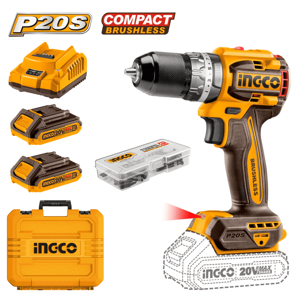 Taladro Atornillador Brushless Chuck Metálico 2 baterías 2ah Ingco CDLI20602