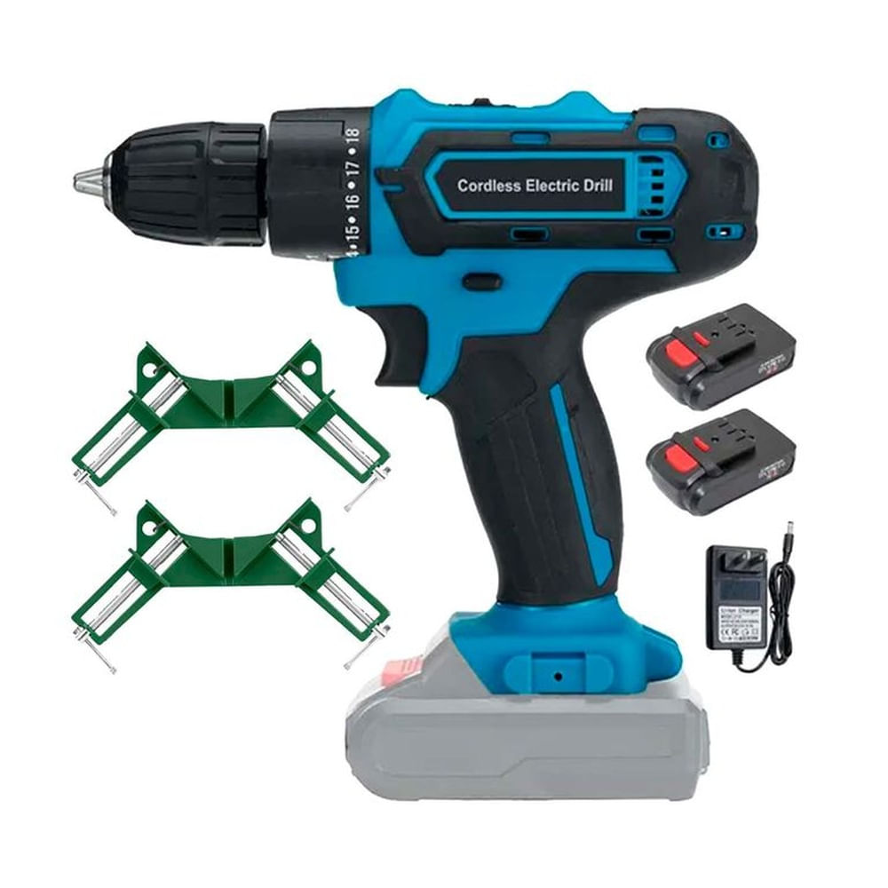 Taladro Atornillador Inalámbrico 21v + Prensa Esquinera 75mm Azul Grafito