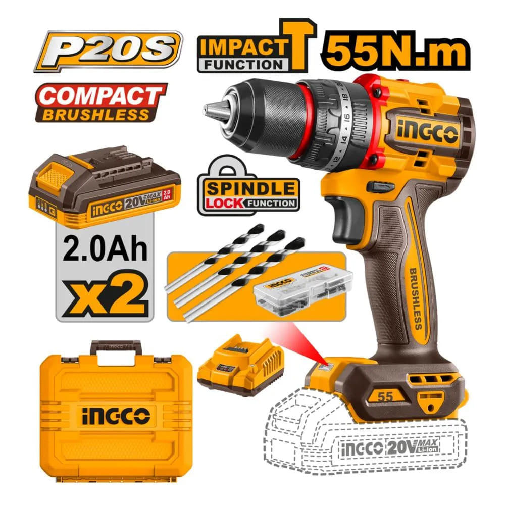 TALADRO PERCUTOR 55NM + 2 BATERIAS 2AH Y CARGADOR (CIDLI20558)