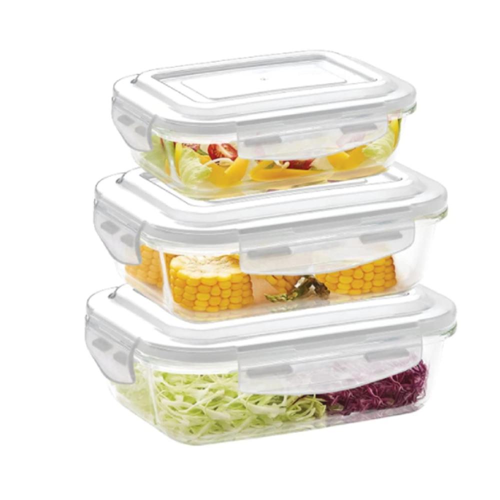 Taper de Vidrio Hermético Rectangular, Set de 3 Unidades