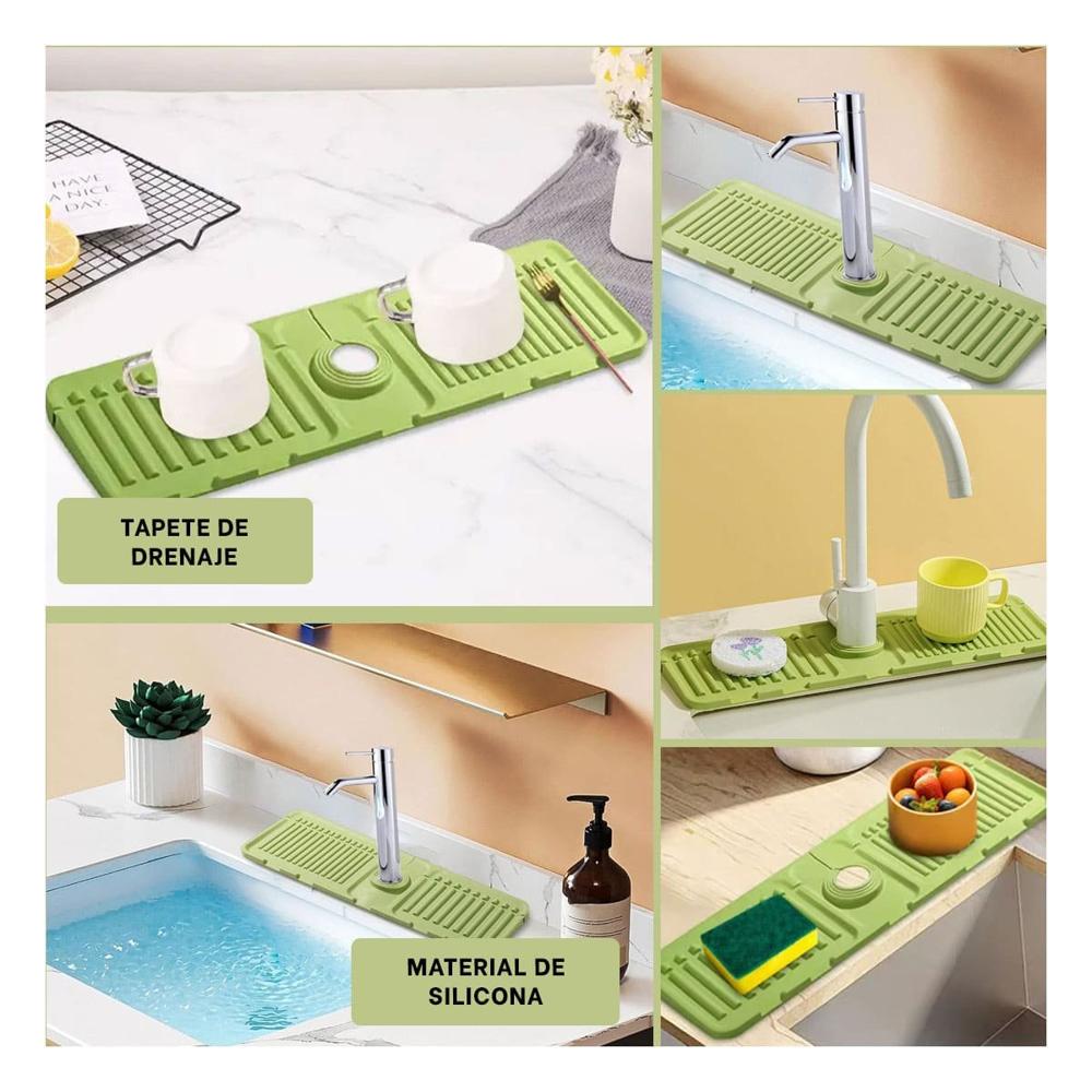 Tapete de Drenaje para Lavadero de Silicona con Rayas Verde Claro Uso Diario