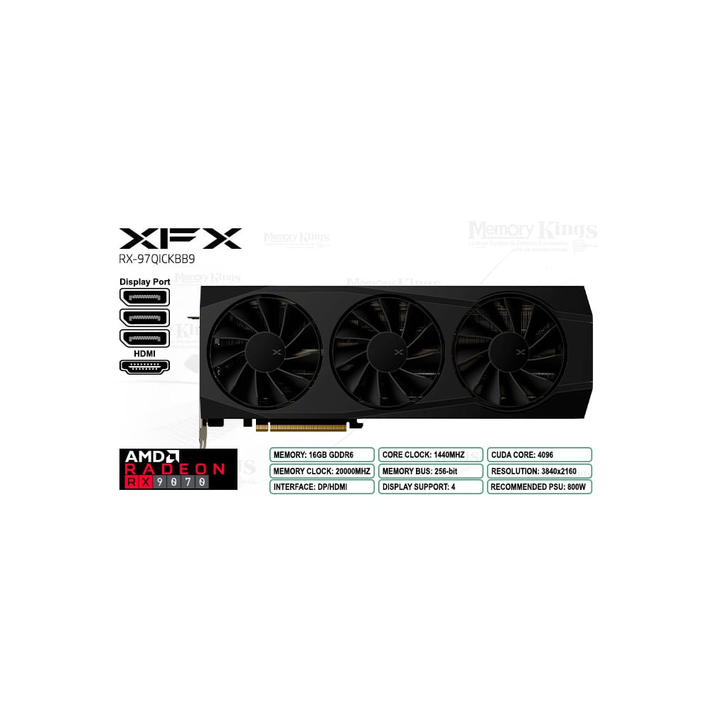 Tarjeta Gráfica XFX Radeon RX 9070 16GB 256-bit Overclock, Rendimiento y Estilo Quicksilver - SKU_RX-97QICKBB9