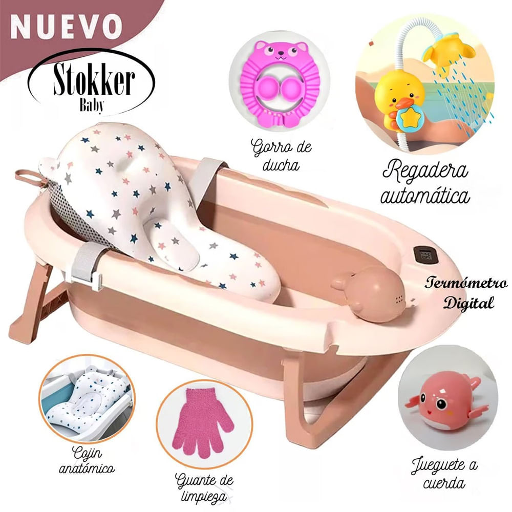 Tina Bañera Plegable Piscis Con Termómetro Rosa