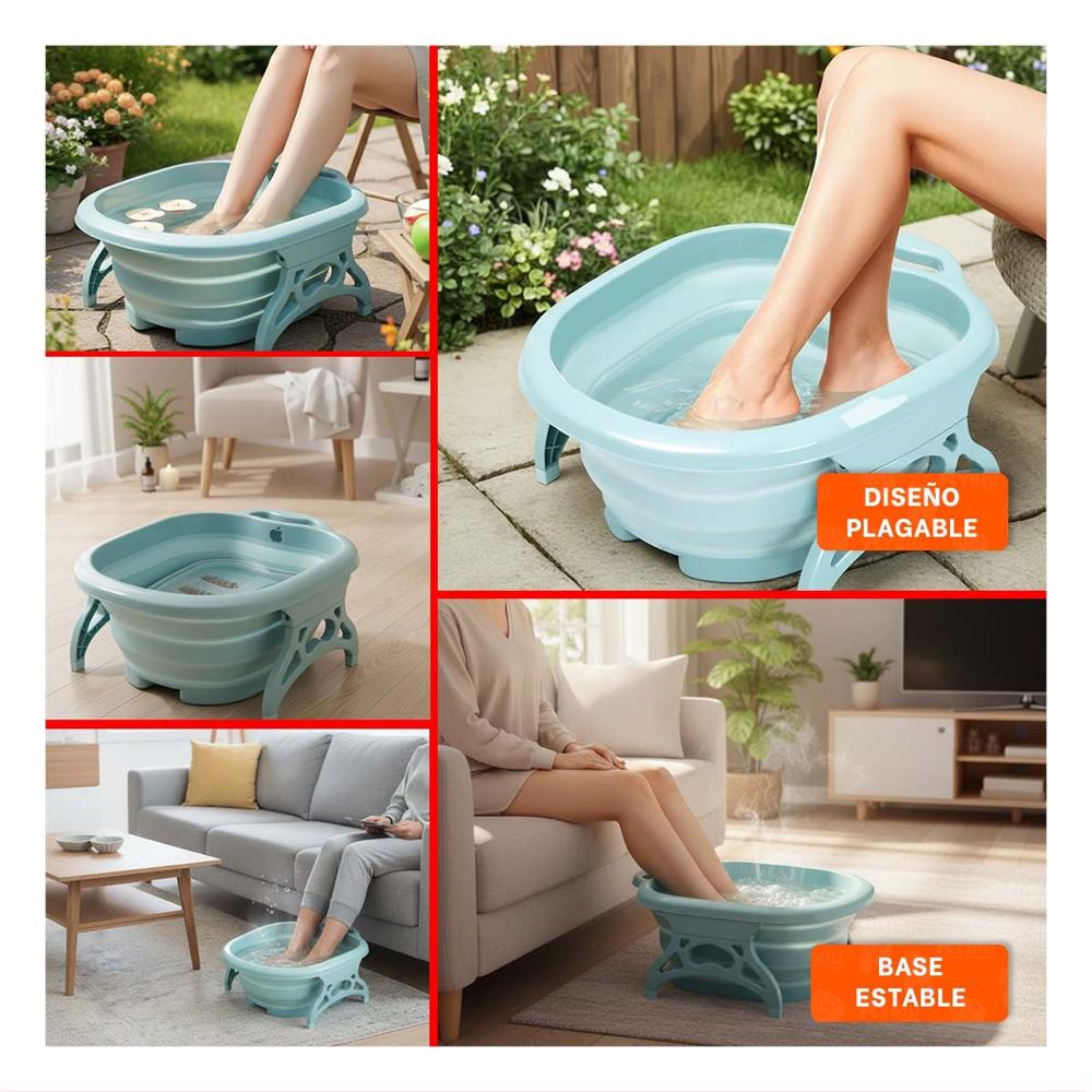Tina Portatil con Masajeador de Pies Celeste para Relajacion y Hogar