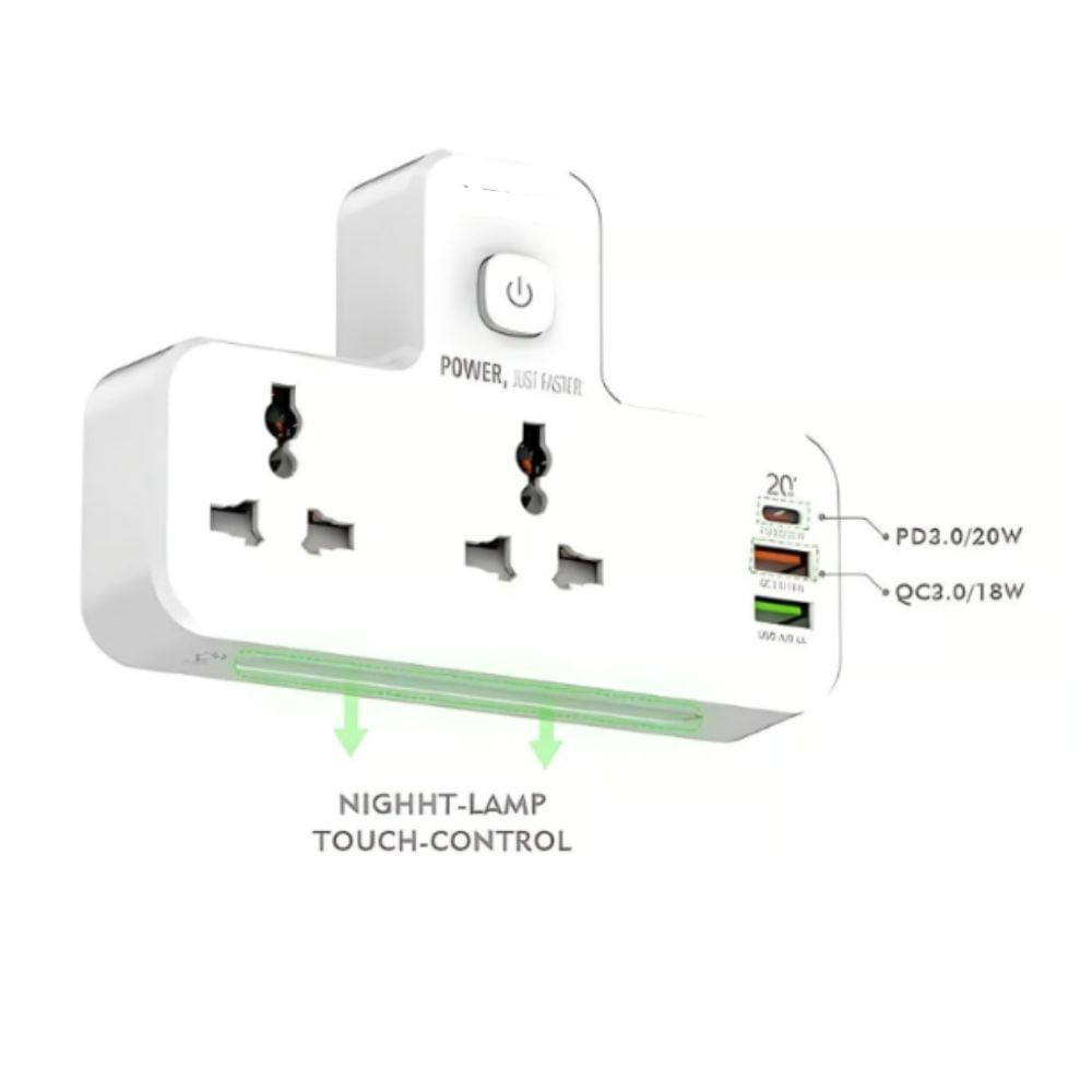 Tomacorriente Carga Rápida y Lampara de Noche con 5 Entradas Ldnio