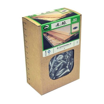 Tornillo Pz Avellanado Zinc 6x40mm para madera 80 unidades Standers