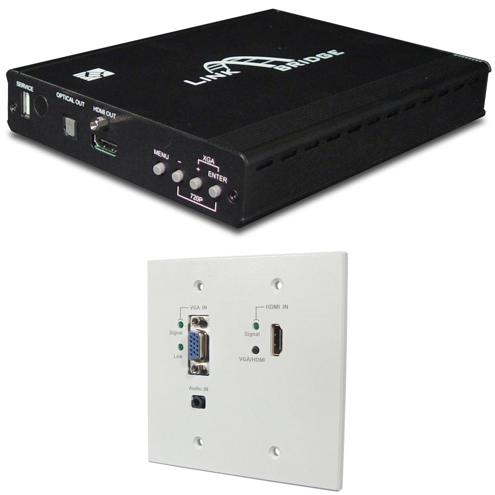 Transmisor de Pared Link Bridge HDBaseT HDMI/VGA y Kit de Receptor con Escalado 5Play (230')