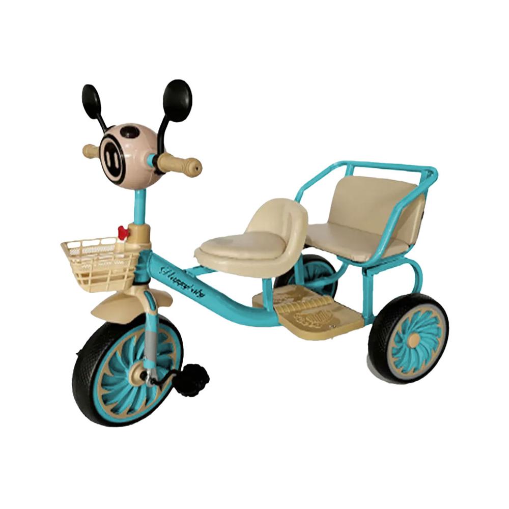 Triciclo Doble Asiento Vintage Con Canastilla Timbre Luz Música Infantil Turquesa