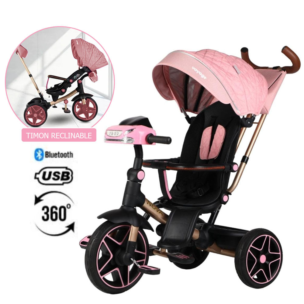 Triciclo Giratorio 5 en 1 Voyage Nova USB Bluetooth Rosado