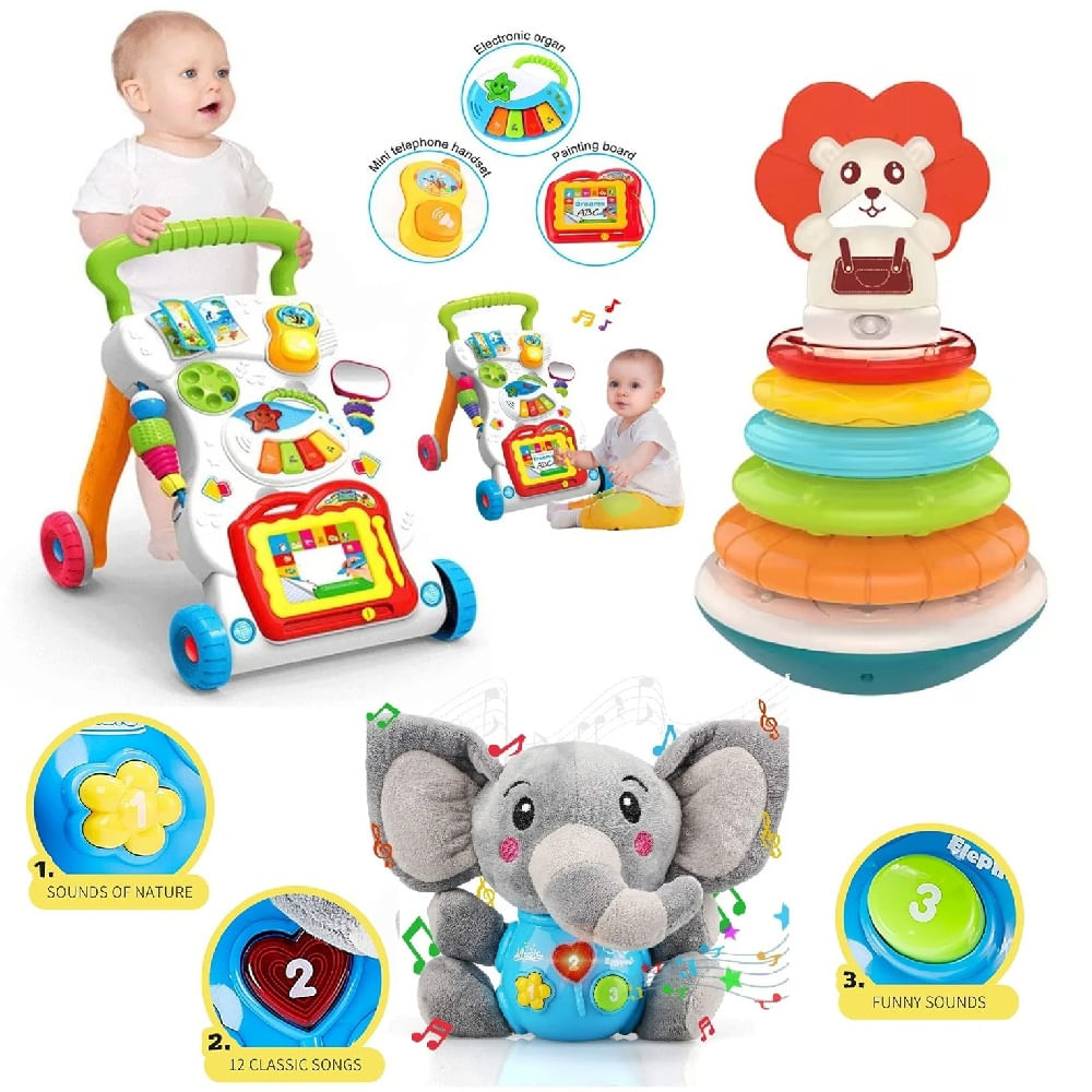 Tricombo Caminador Pizarra Musical Stacking Anillo y Peluche Musical