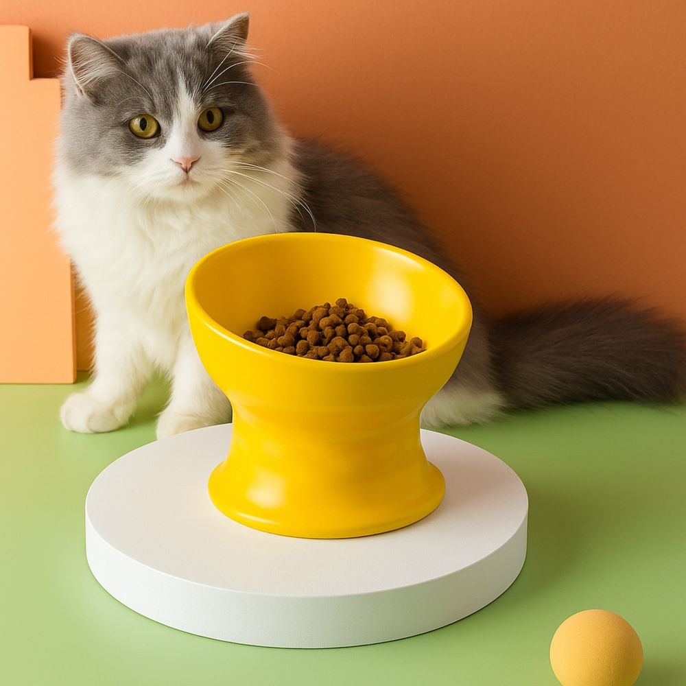 TwistBowl Comedero Elevado de Cerámica Amarillo