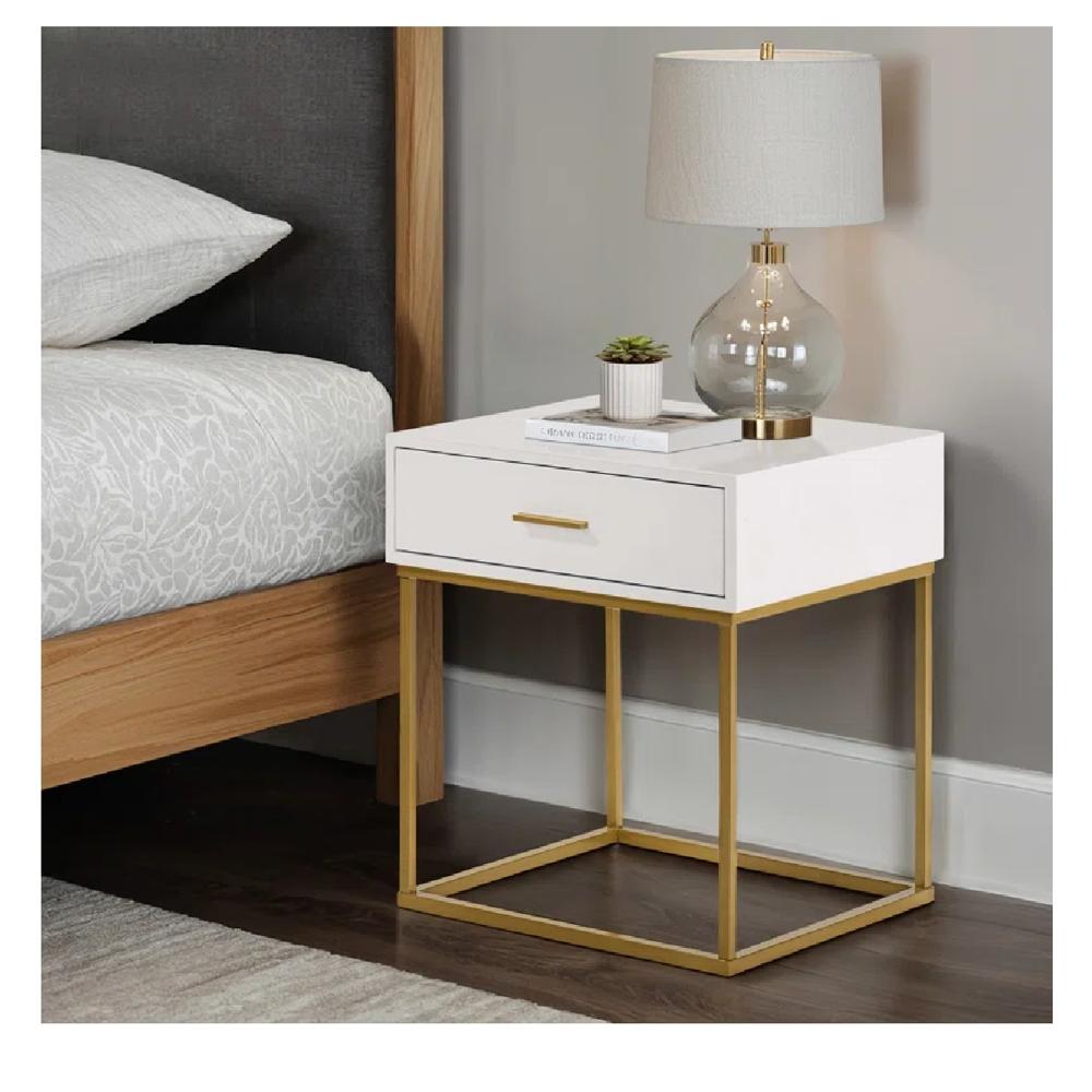 Velador Mesa de Noche Marks TU MESITA Melamina 18mm Base de metal color Blanco