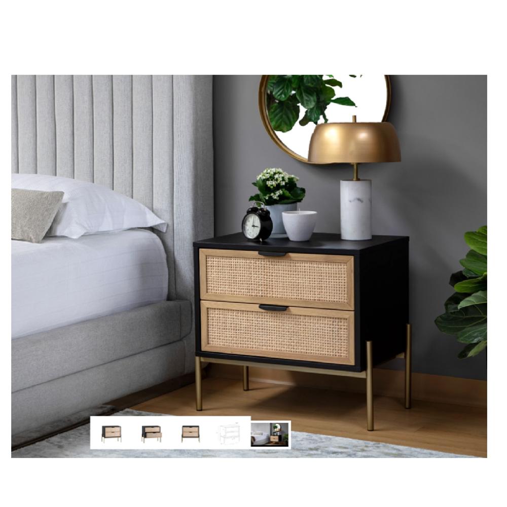 Velador Moderno Rocha color Negro con Ratán 2 cajones TU MESITA