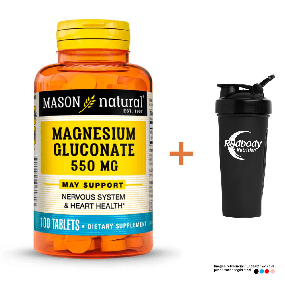 Vitaminas Mason Natural - Magnesium Gluconate 550 Mg (100 Tab) + Shaker