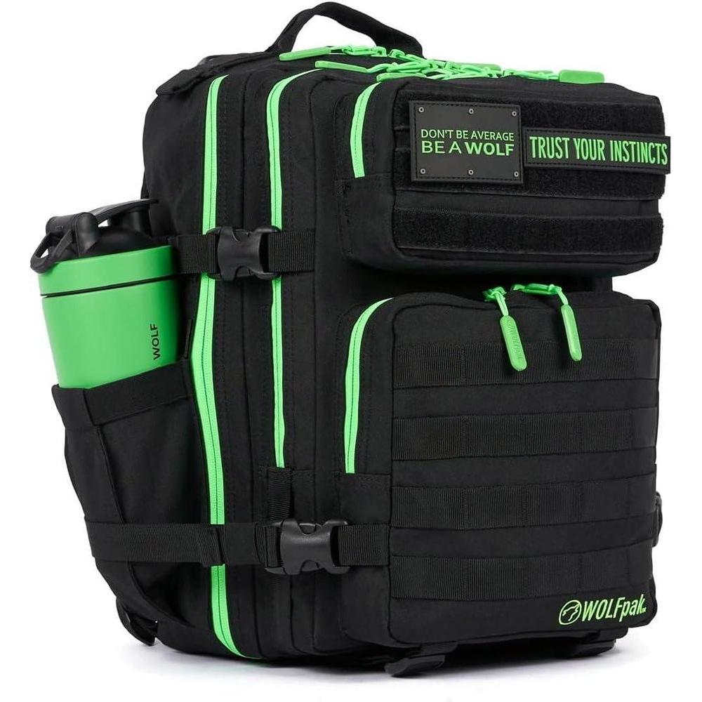WOLFpak Mochila 25L negro verde neón, ideal para viaje y diario