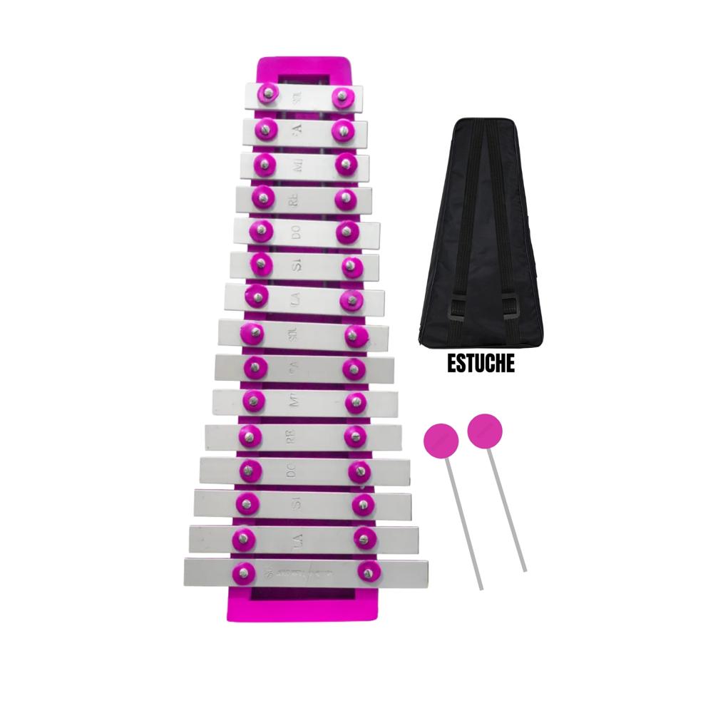 Xilófono Metalófono de 2 Octavas de 15 Notas Rosado